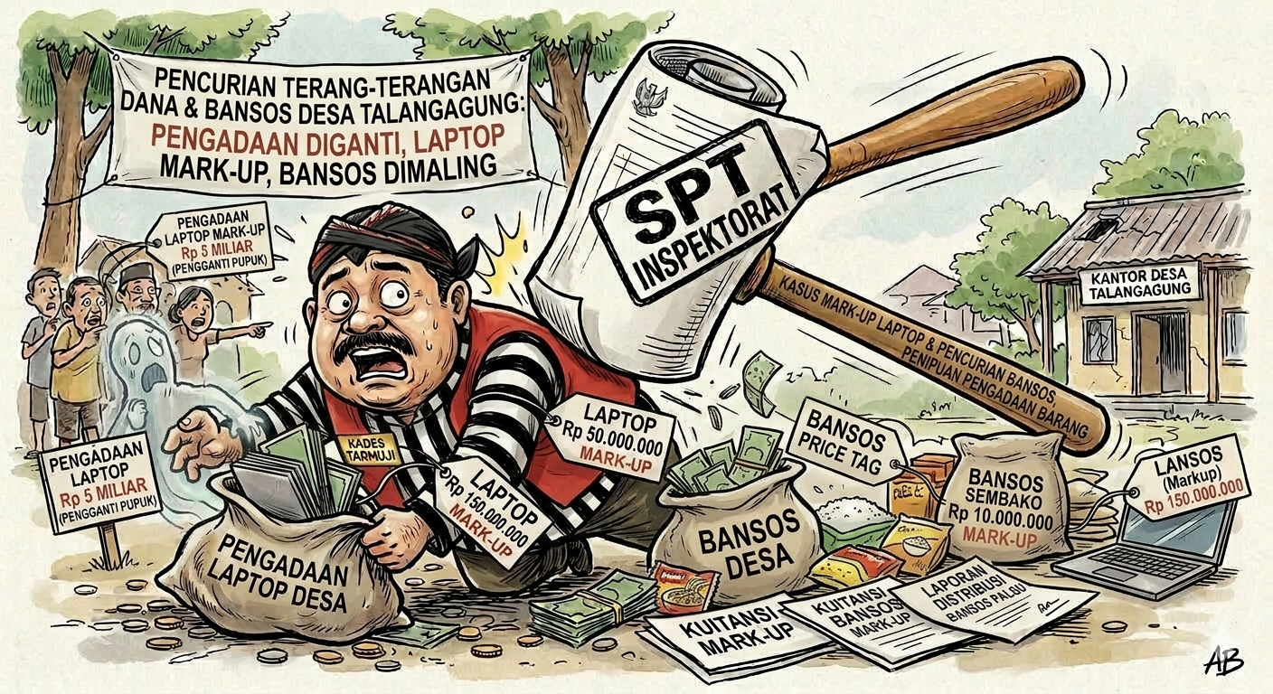 MALANG,KlikNews.Co.Id – Gempuran keras datang dari Inspektorat Kabupaten Malang melalui Surat Perintah Tugas Nomor 700.1.2/209/35.07.200/2026 bertanggal 22 Januari 2026. Dokumen resmi ini menghantam telak Kepala Desa Talangagung, Tarmuji, dengan perintah pemeriksaan total APBDesa tahun anggaran 2025 yang penuh tanda tanya.