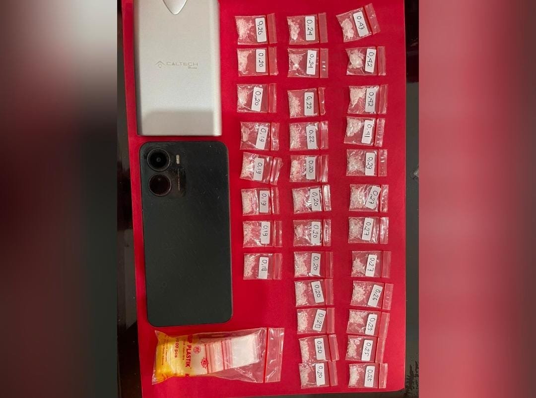 Dari hasil penggeledahan, lanjutnya, petugas mengamankan 32 poket sabu dengan berat total 4,819 gram, satu unit ponsel merek Vivo warna hitam, timbangan elektrik, serta plastik klip kosong yang digunakan sebagai sarana pengemasan.