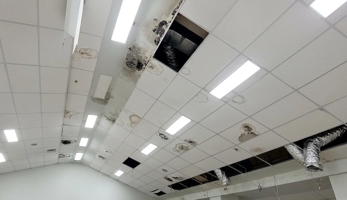 Pemandangan atap yang hancur, seolah baru saja menjadi lokasi syuting film laga kolosal bertajuk “Runtuhnya Atap Gengsi.”