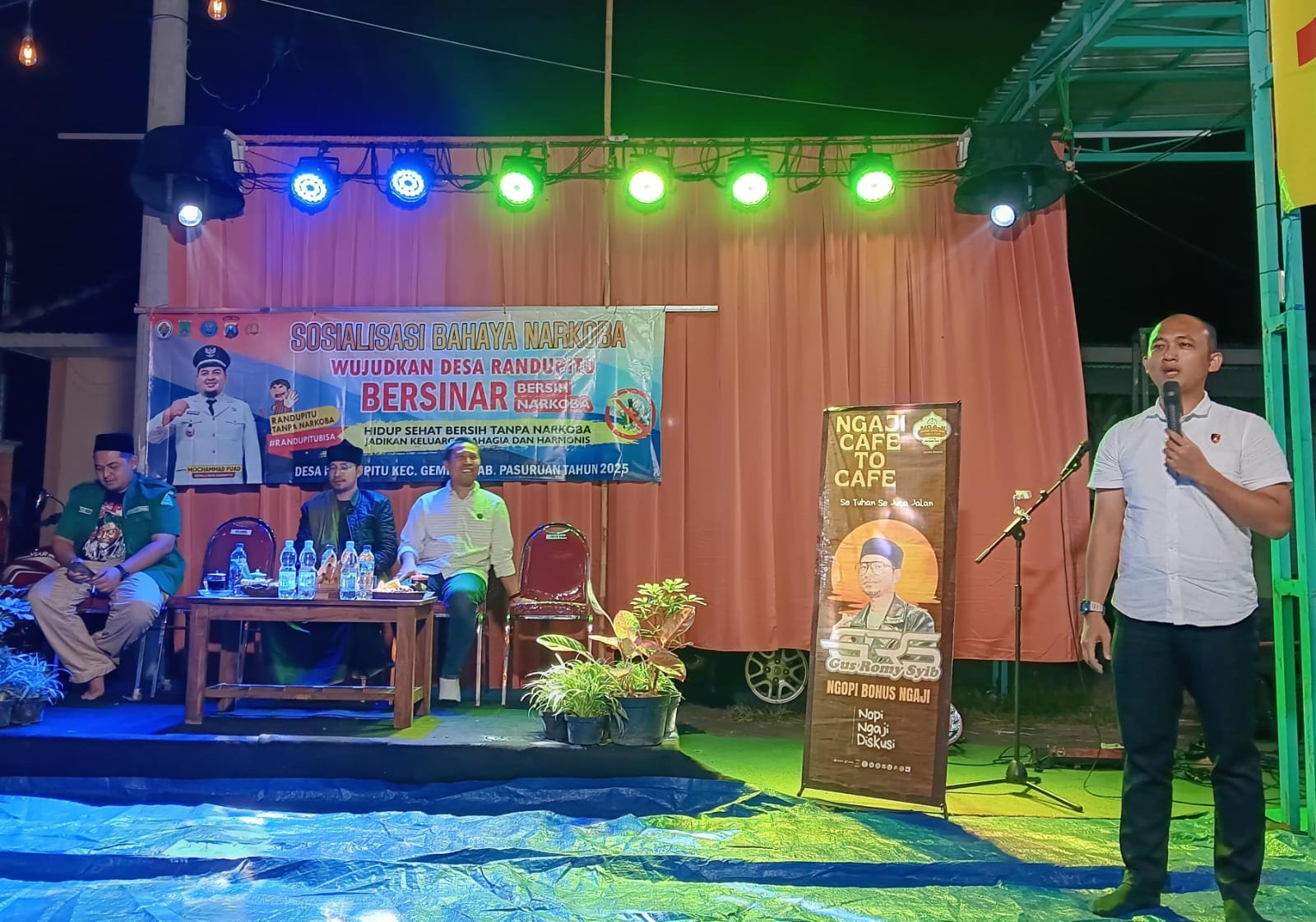 PASURUAN, KLIKNEWS.CO.ID – Guna mengantisipasi sekaligus menekan peredaran narkoba yang semakin meresahkan dan menjadi ancaman serius bagi generasi muda, Pemerintah Desa Randupitu bekerja sama dengan PC GP Ansor Bangil, BNN Kabupaten Pasuruan, dan Polres Pasuruan menggelar sosialisasi bahaya narkoba.