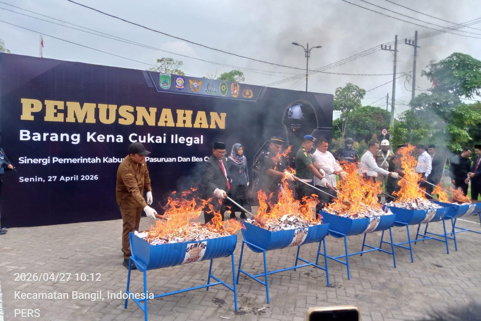 PASURUAN, KlikNews.Co.iD – Pemerintah Kabupaten Pasuruan bersama Kantor Bea Cukai Pasuruan menggelar konferensi pers dan pemusnahan barang kena cukai (BKC) ilegal di halaman Kantor Bupati Pasuruan, Senin (27/4/2026). Kegiatan ini menegaskan sinergi kedua instansi dalam memberantas peredaran barang ilegal yang merugikan negara.