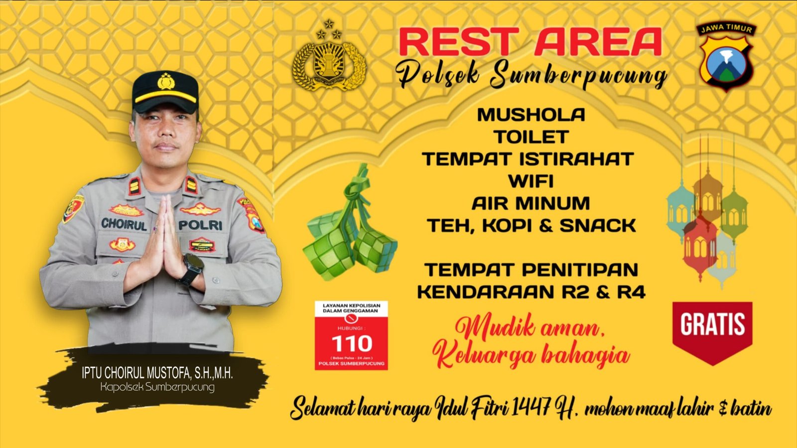 MALANG – KlikNews.Co.Id|Di tengah hiruk-pikuk mudik Lebaran 2026, Polsek Sumberpucung Polres Malang muncul sebagai penyelamat lelah. Kantor polisi sektor di perbatasan Malang-Blitar ini disulap rest area gratis oleh Kapolsek Iptu Choirul Mustofa SH MH. Tak sekadar gimmick, inisiatif ini jawab keluhan pemudik yang sering kelelahan di jalan sempit dan panas terik. “Pemudik bisa istirahat dari perjalanan jauh, sholat lima waktu, mandi segar, atau nikmati kopi hitam, teh manis, hingga air mineral gratis yang sudah kami stok melimpah,” tutur Kapolsek Choirul Mustofa pada awak media kliknews.Co.Id, Jumat (13/3).