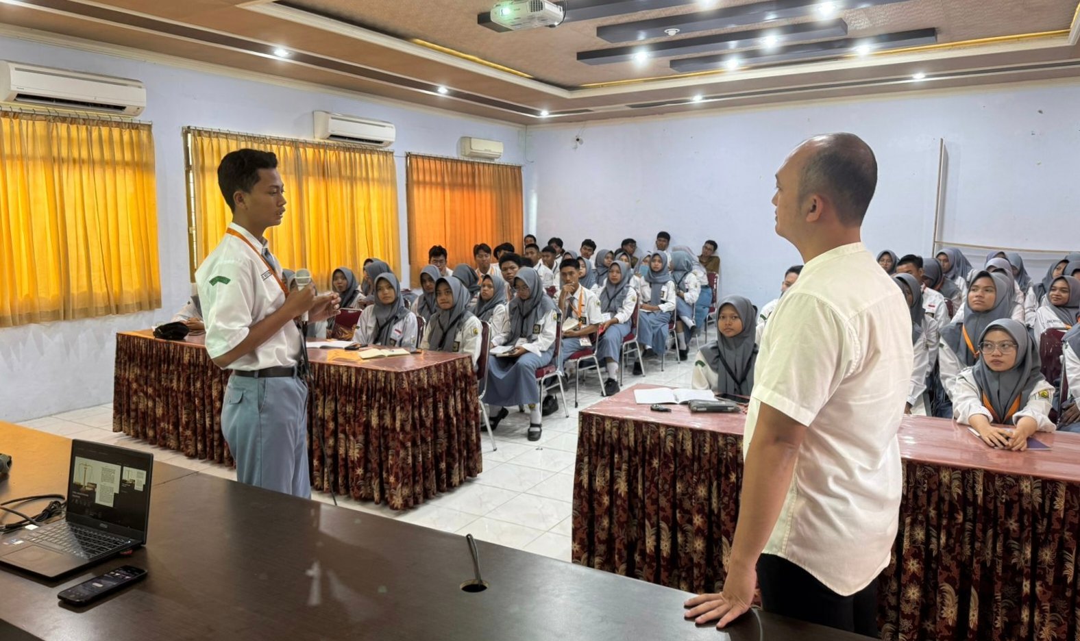 Dalam penyampaiannya, IPDA M. Fajar Indranata, yang akrab disapa Bang Indra, tampil lugas dan penuh semangat saat menyampaikan materi kepada para siswa.